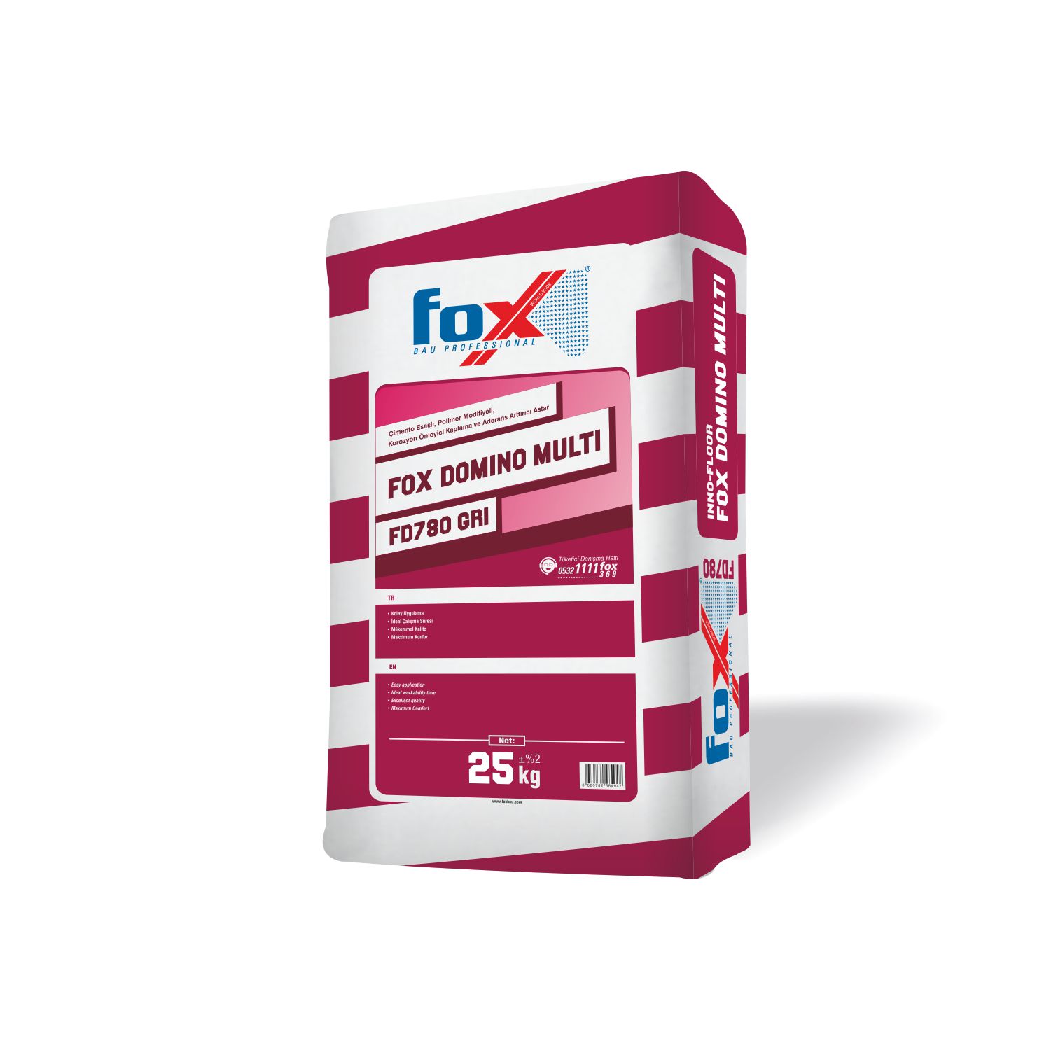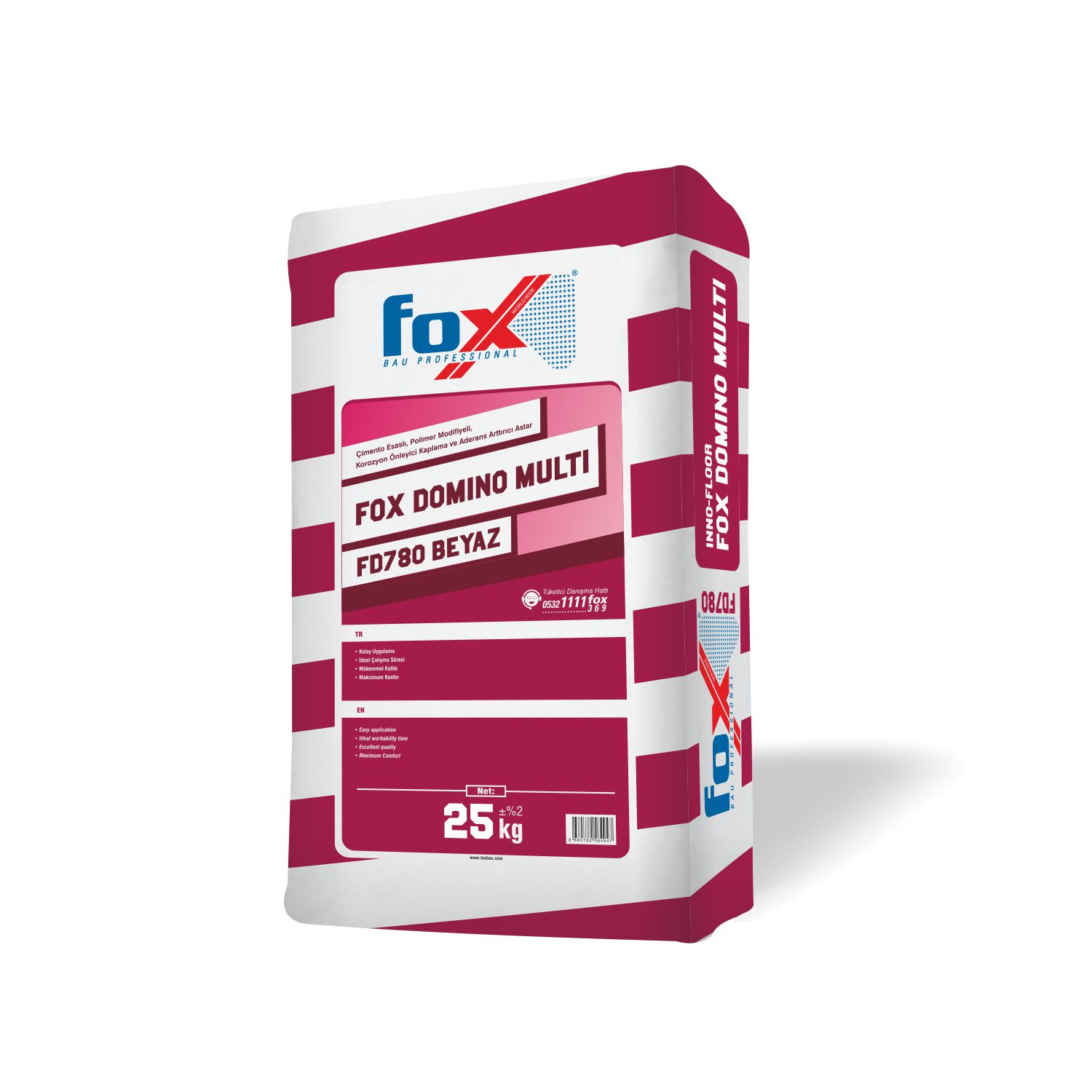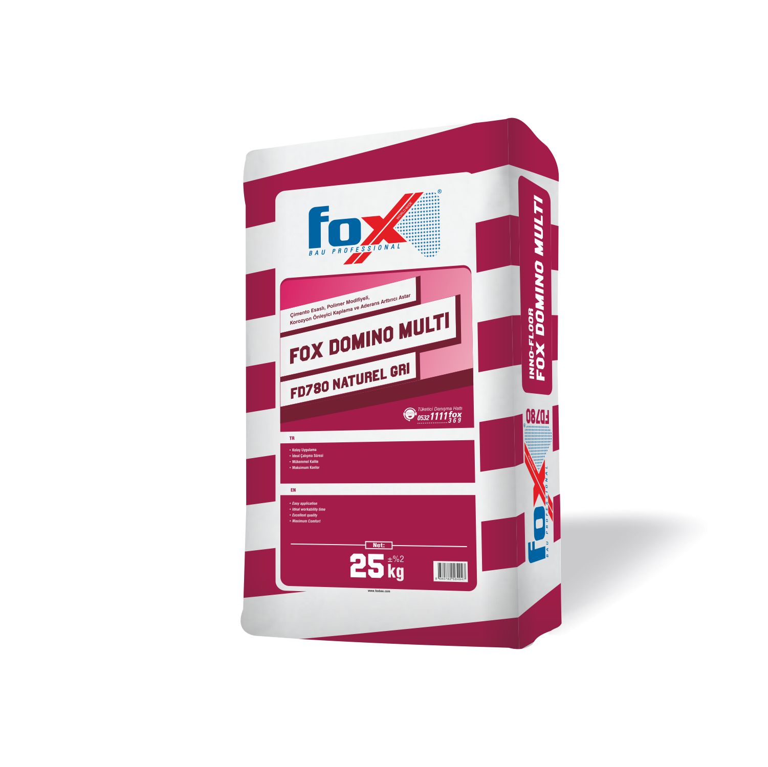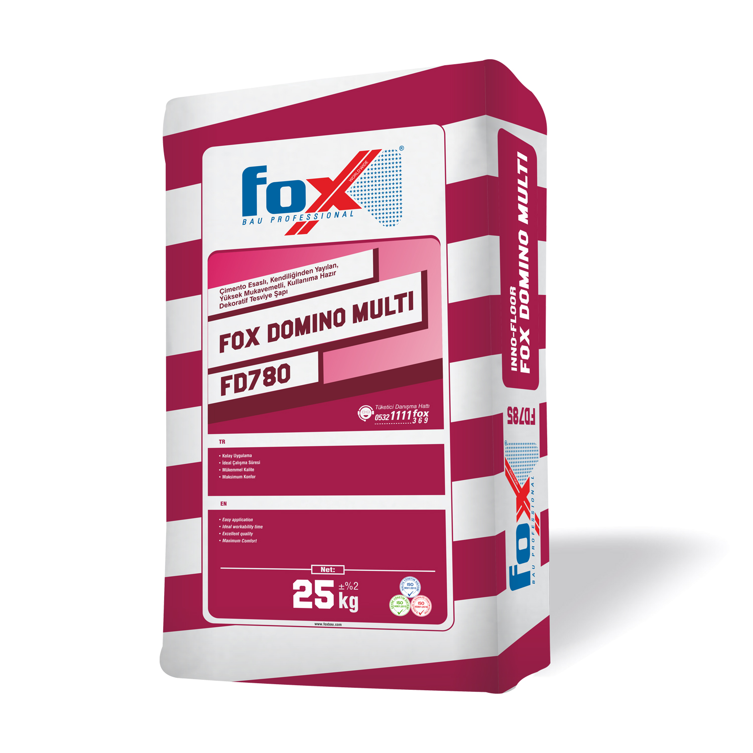 FOX DOMINO® MULTI FD780, Çimento esaslı, kendiliğinden yayılan, 5-50 mm kalınlığa kadar uygulanabilen, son kat kullanıma hazır yüksek mukavemetli,renklendirilebilen dekoratif tesviye şapıdır.