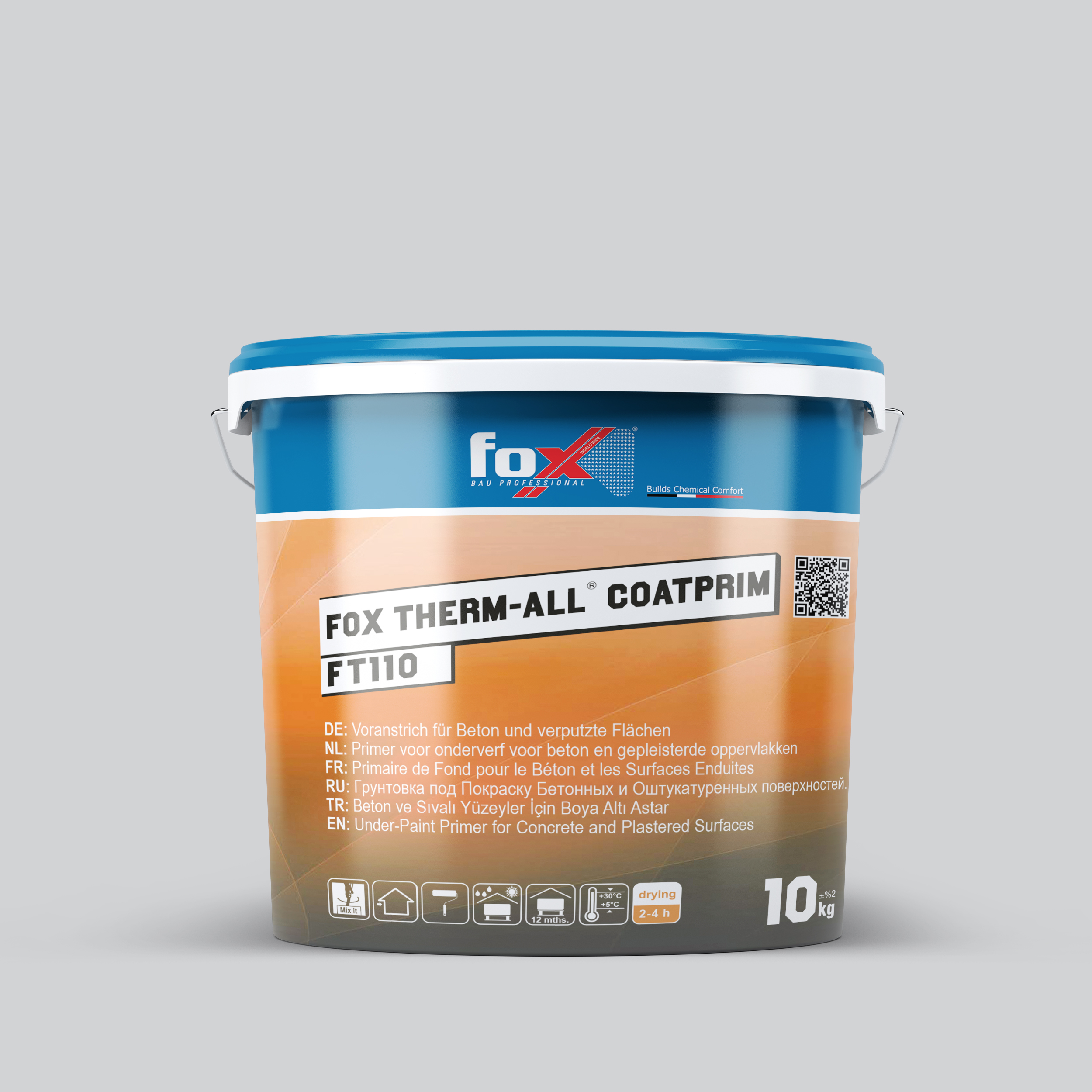 FOX THERM-ALL® COATPRIM FT110, Akrilik polimer dispersiyon esaslı, FOX THERM-ALL® COAT FT220 Düz ve FOX THERM-ALL® COAT FT220 Grenli gibi kaplamaların betonarme ve sıvalı yüzeylere aderansını sağlamak için geliştirilmiş astar malzemesidir.